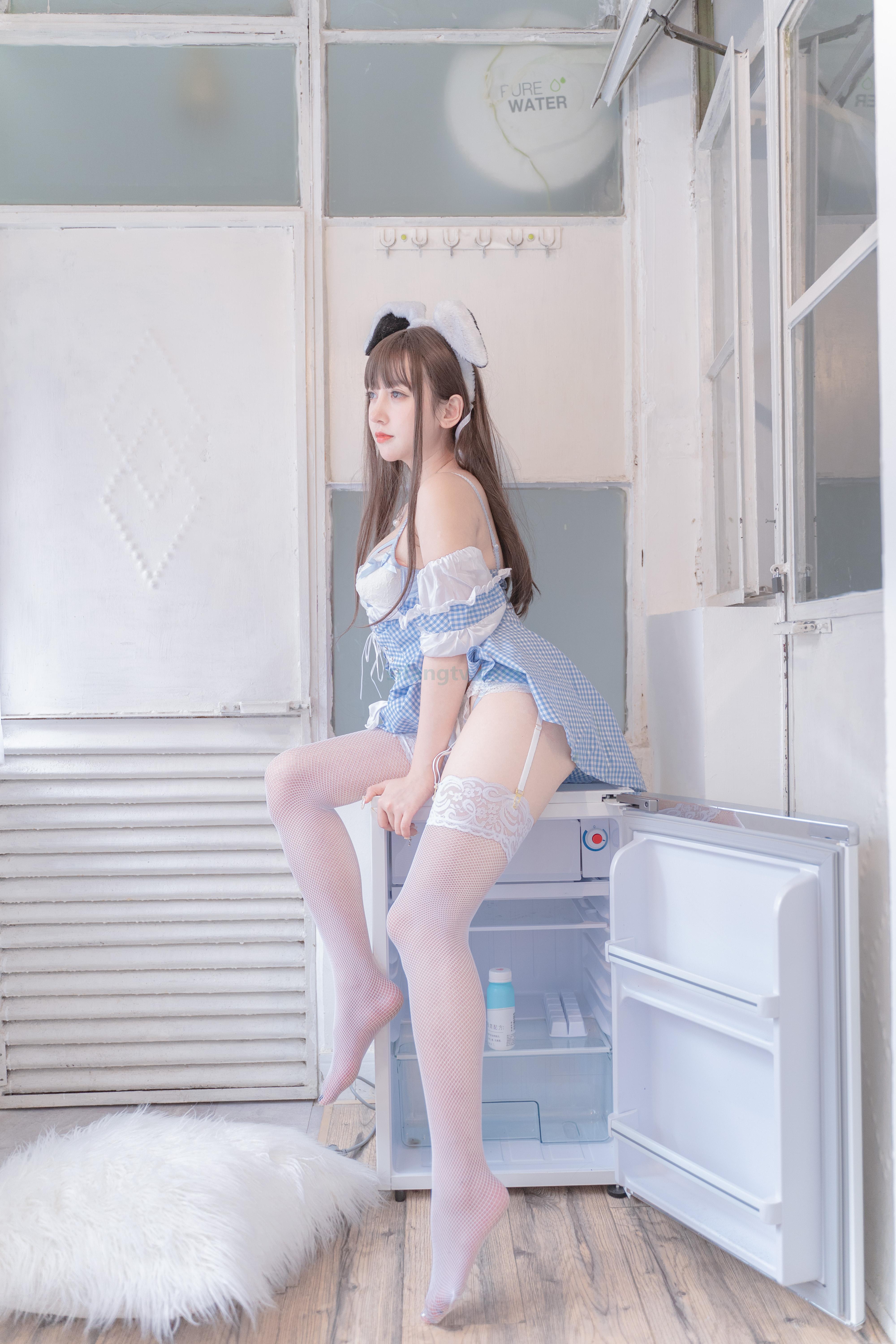 米线私房福利图集—蓝白女仆装